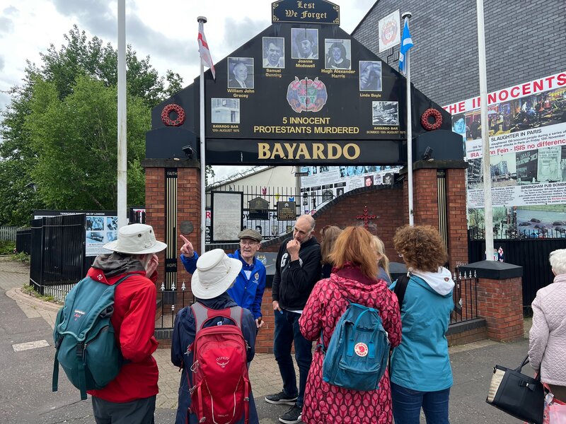 The walk explores both nationalist and unionist communities, including peace walls, murals, and key locations connected to the Troubles.
