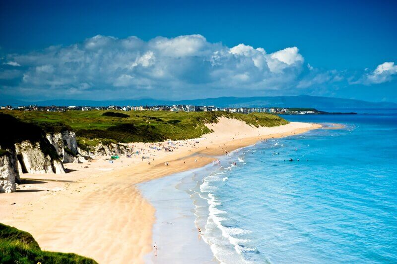 The resort town of Portrush is a popular spot for those looking to visit beautiful blue flag beaches, making this coastal town a perfect summer destination.